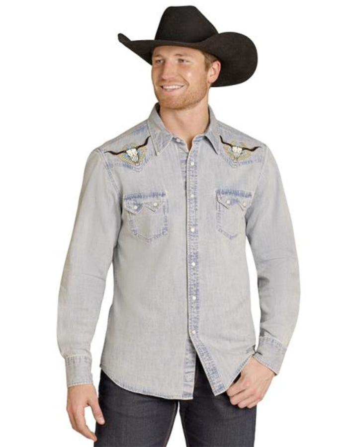 Light blue Longhorn denim western shirt