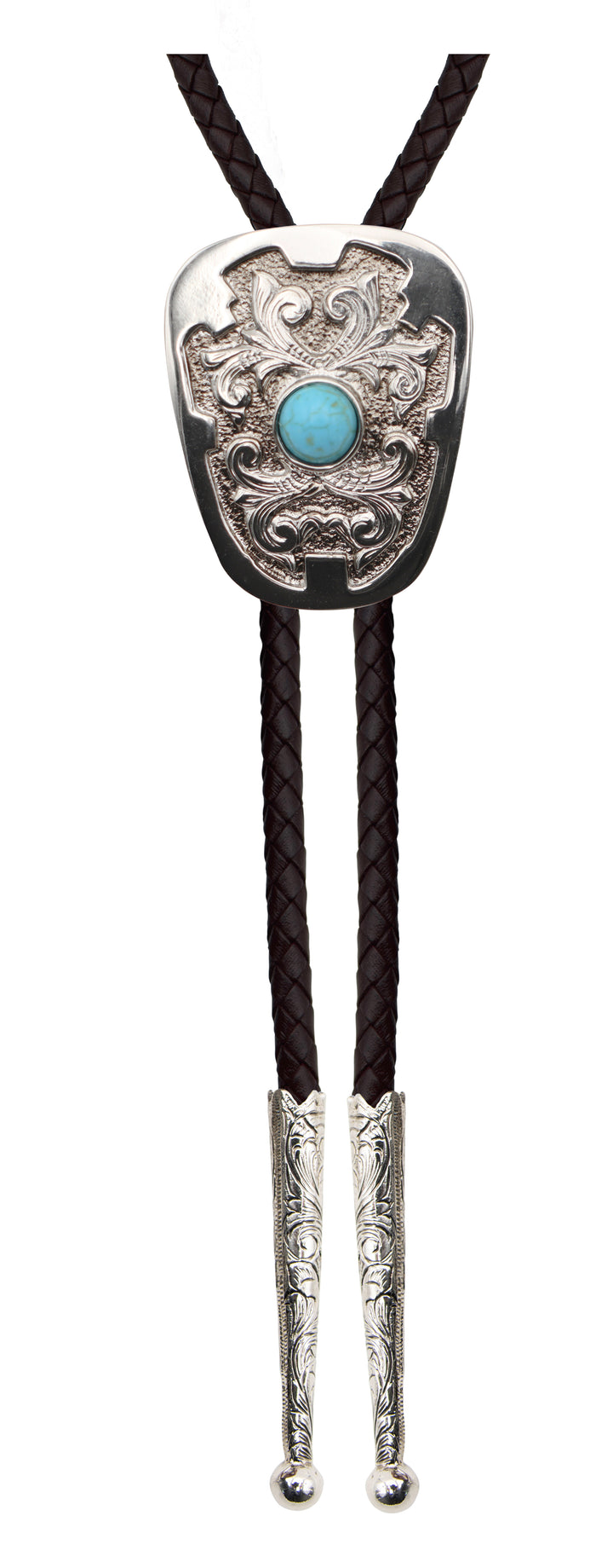 Apportez une touche d'élégance western à votre style avec ce bolo tie raffiné ! Son médaillon gravé de motifs floraux et sa turquoise centrale en font un accessoire unique et authentique.