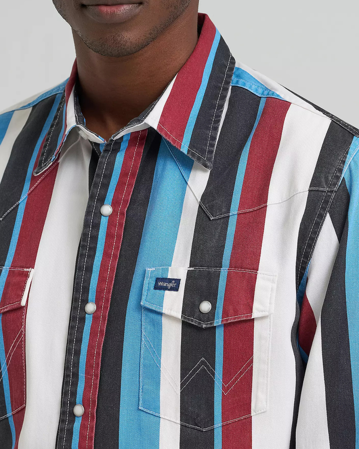 Le Wrangler® Brushpopper ne revient pas sur le devant de la scène: il n’a jamais vraiment quitté le terrain depuis 1979. Conçu pour accompagner les mouvements, assez robuste pour durer et fidèle à l’authenticité dès la première couture, il a trouvé au fil du temps une seconde vie. Cette chemise western vintage à boutons-pression dynamise instantanément une tenue avec ses rayures vives et colorées, chaque modèle étant légèrement unique. Réalisée en coton et coupée dans une coupe regular, elle offre un confort durable saison après saison, avec tous les détails emblématiques: empiècements western à l’avant et à l’arrière, poches poitrine avec broderie « W » signature et boutons-pression nacrés pour un superposition facile.