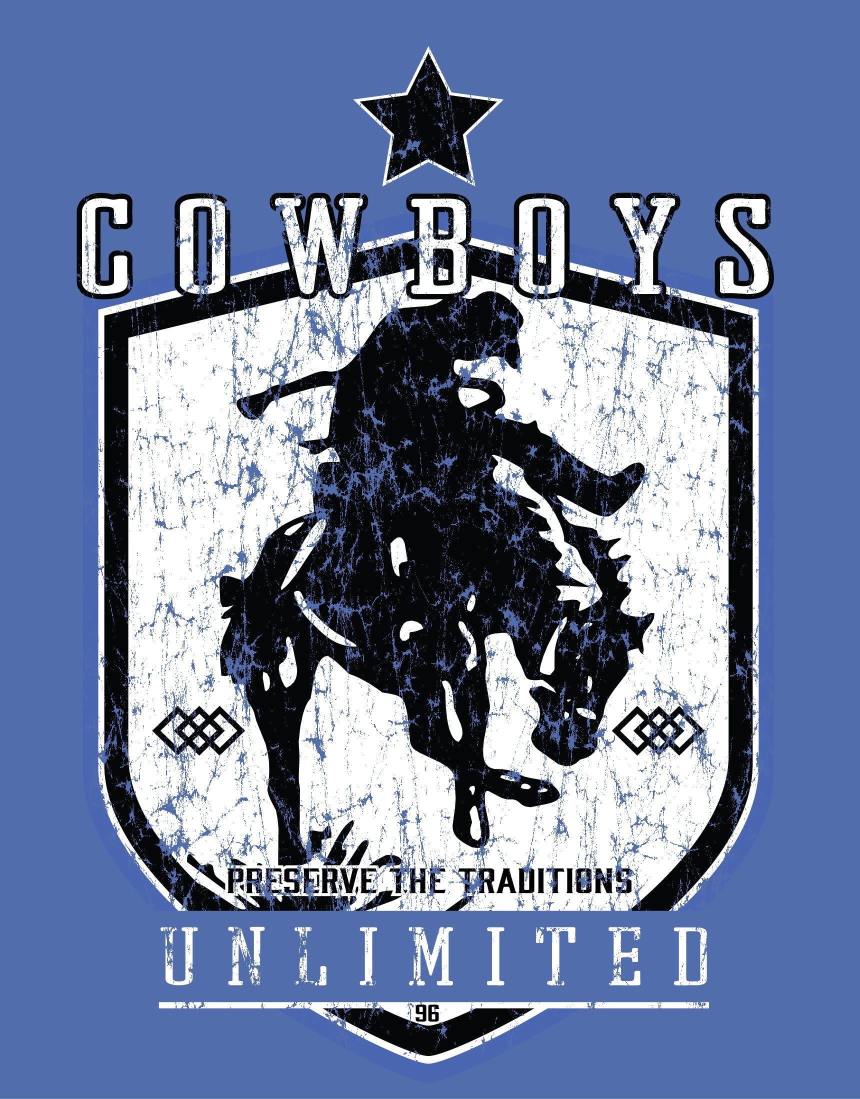 T-shirt - Bleu Imprimé Diamond Bronc Homme - Cowboys UnlimitedPromos