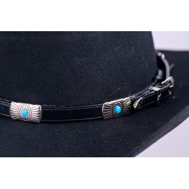 Brown bound edge, brown leather hatband with imitation...