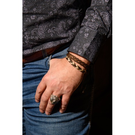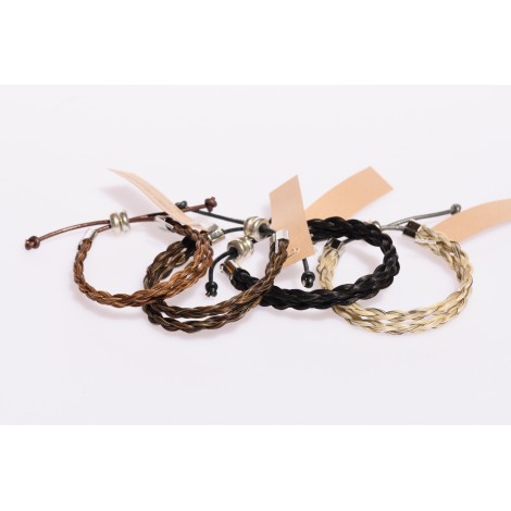 Bald Hornet was ridden only 4 times in his career. A winner just like this simple double strand bracelet. Adjust to any wrist size using leather that slides through two rubber grommets.