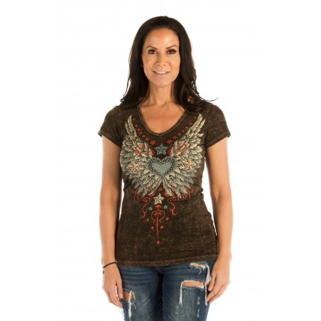 A stylish white top tank featuring a graphic of a motorcycle and a flying eagle, embellished with rhinestones and beautiful fringes, giving you a...