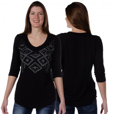 Chemise western bordeaux avec de petits motifs noirs Aztèque. Les manches sont irréversibles pour vous donner un style unique.